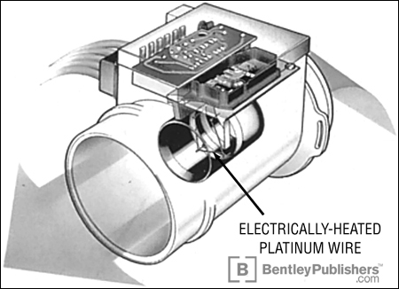 hot wire A method of measuring the air inducted into a fuel-injected gasoline engine. A thin wire across the air intake is heated to a constant temperature by electrical current. Any change in airflow (such as when the driver pushes the accelerator down or releases it) tends to change the wire's temperature; the control system immediately corrects the temperature back to its constant value. The current required to maintain that constant value is the indicator of airflow and thus the system's basic operating signal.
