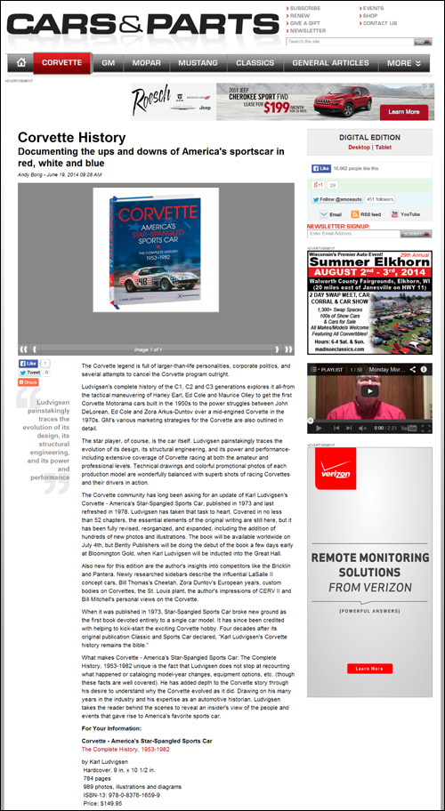 When it was published in 1973, Star-Spangled Sports Car broke new ground as the first book devoted entirely to a single car model. It has since been credited with helping to kick-start the exciting Corvette hobby. Four decades after its original publication Classic and Sports Car declared, "Karl Ludvigsen's Corvette history remains the bible."