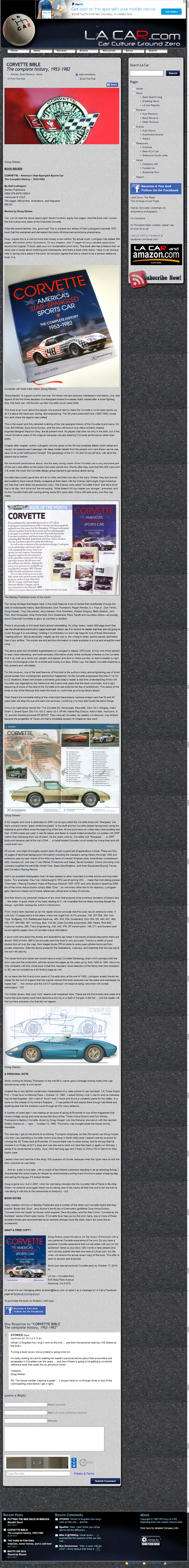 The above said, this incredible augmentation of Ludvigsen's classic 1973 book, is truly one of the easiest to read, most interesting, and most seriously informative of any of the multitude of books on the Corvette. Pick it up, look up a name (car, people, and places) and dive in where you like, or read a chapter a night; in strict chronological order for a month and twenty-two days. Either way, the classic Corvette charisma is fully present and well-stated.