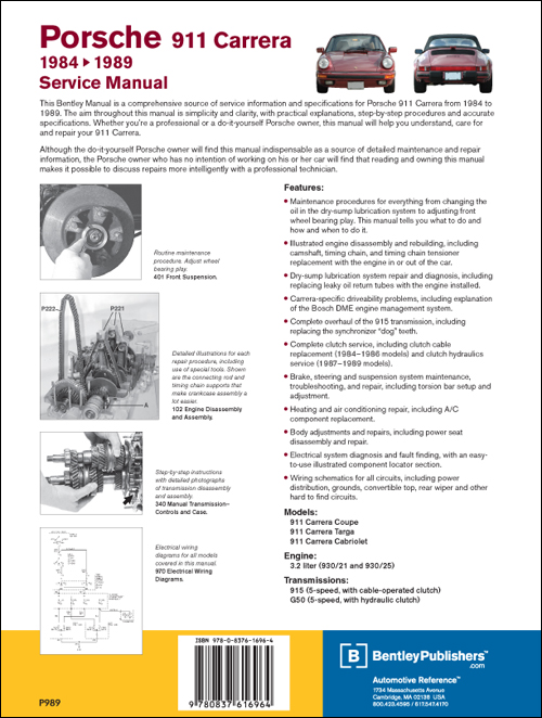 Home Porsche Repair Porsche 911 Carrera: 1984-89 Manual